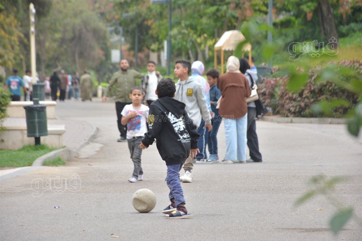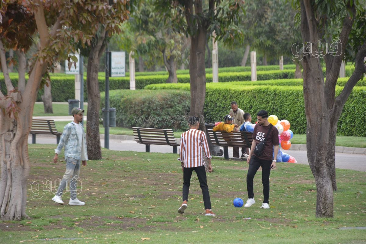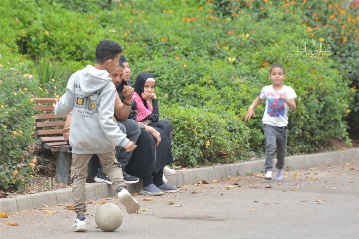 حرصت العديد من العائلات على احضار الكرات إلى حديقة الأزهر للعب كرة القدم مع أطفالهم والاحتفال بثاني أيام عيد الفطر وسط الطبيعة الخلابة.