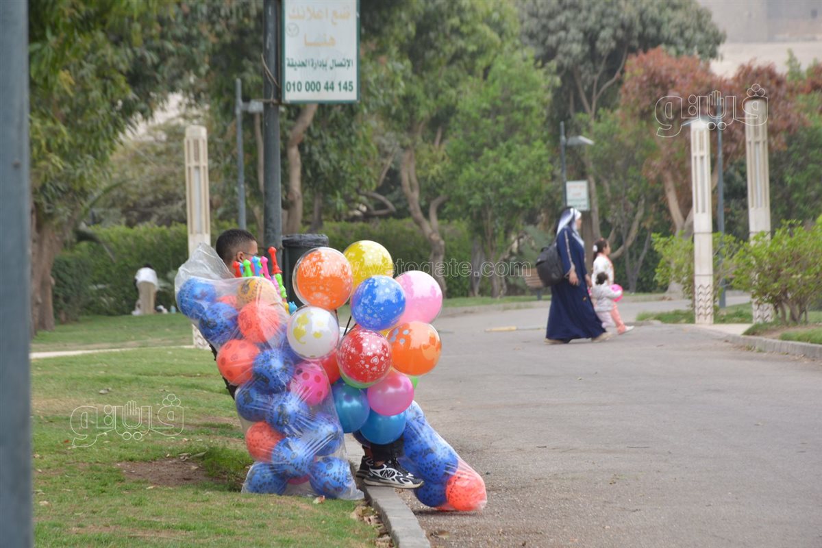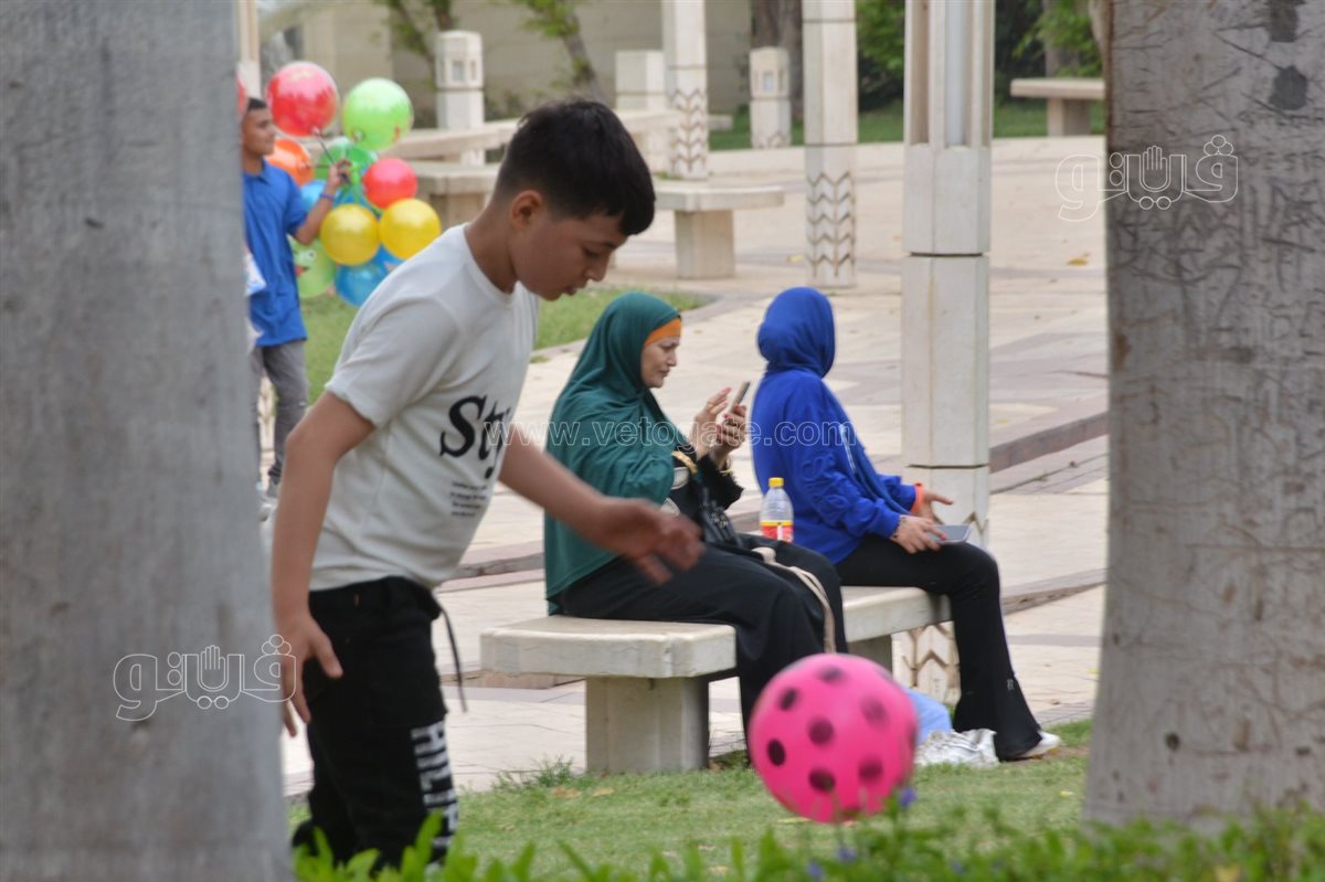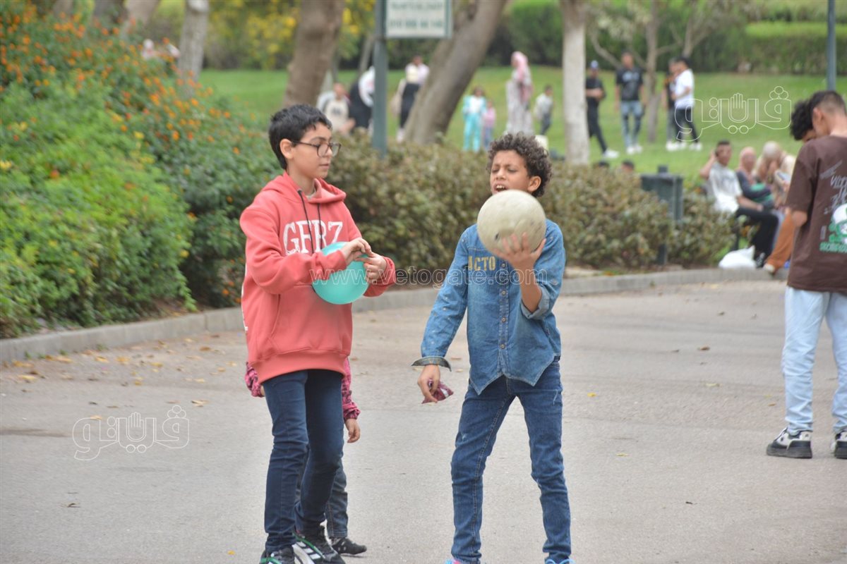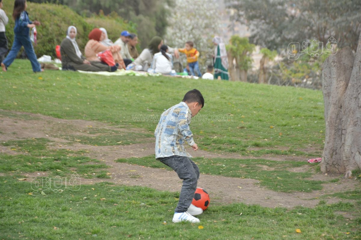حرصت العديد من العائلات على احضار الكرات إلى حديقة الأزهر للعب كرة القدم مع أطفالهم والاحتفال بثاني أيام عيد الفطر وسط الطبيعة الخلابة.