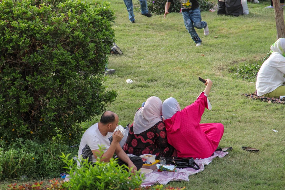 حرص المواطنين على الخروج إلى الحدائق لقضاء بعض الأوقات والاحتفال بالعيد والاستمتاع بالأجواء المعتدلة وأشعة الشمس الدافئة وسط أجواء من البهجة والمرح.