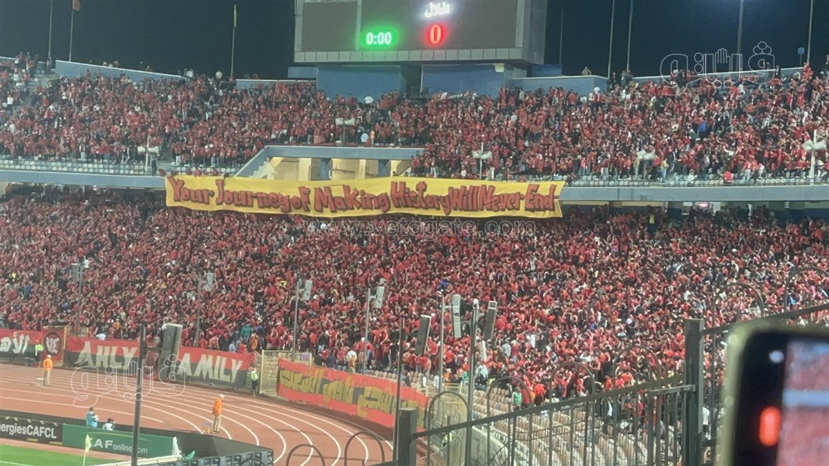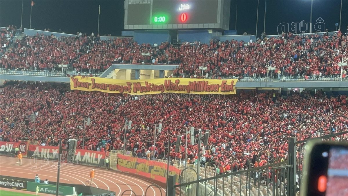 رفعت جماهير النادي الأهلي لافتة كبرى عليها عباراة “رحلتك في كتابة التاريخ لن تنتهي" قبل انطلاق مباراة الهلال السوداني مساء اليوم الثلاثاء، على ملعب ستاد القاهرة الدولي، في المباراة المقرر أن تجمع بينهم في ذهاب الدور ربع النهائي من بطولة دوري أبطال أفريقيا