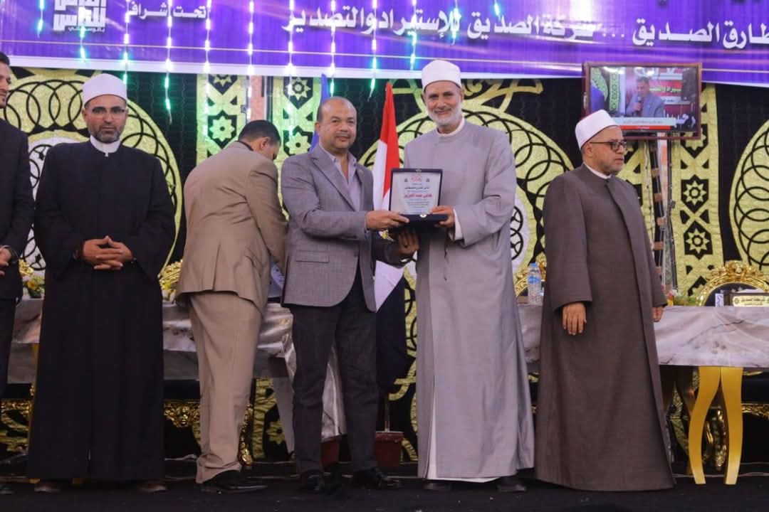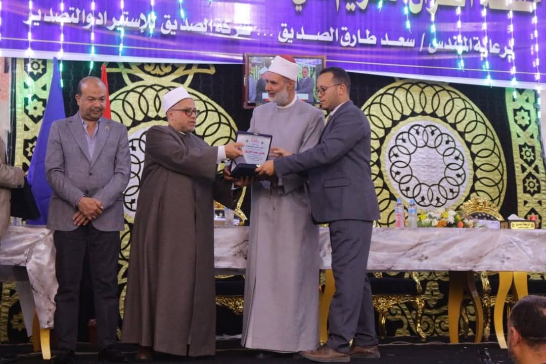 في ختام الحفل، تسلم اللواء عبد الله عاشور درعًا تذكاريًا مقدمًا من راعي الحفل إلى محافظ دمياط، تقديرًا لدعمه لهذه المسابقة القرآنية المباركة.