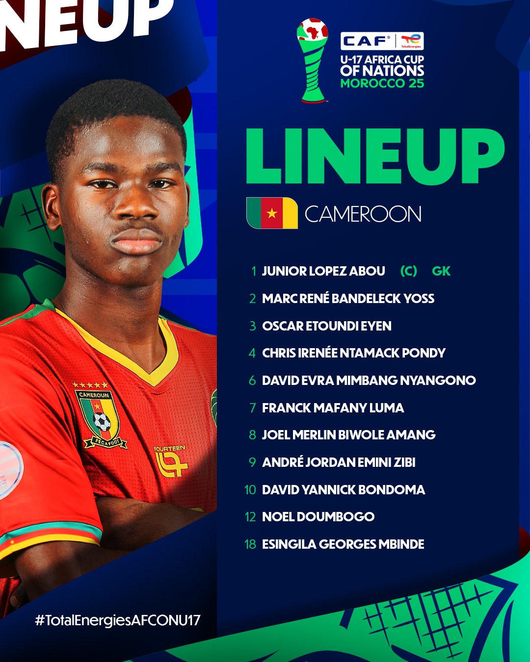 أمم إفريقيا للناشئين، تعادل منتخب الكاميرون مع نظيره منتخب جنوب أفريقيا، سلبيا في المباراة التي جمعت بينهما في الجولة الثانية بدور المجموعات ببطولة أمم أفريقيا تحت 17 عاما المقامة في المغرب في الفترة من 30 مارس إلى 19 أبريل.