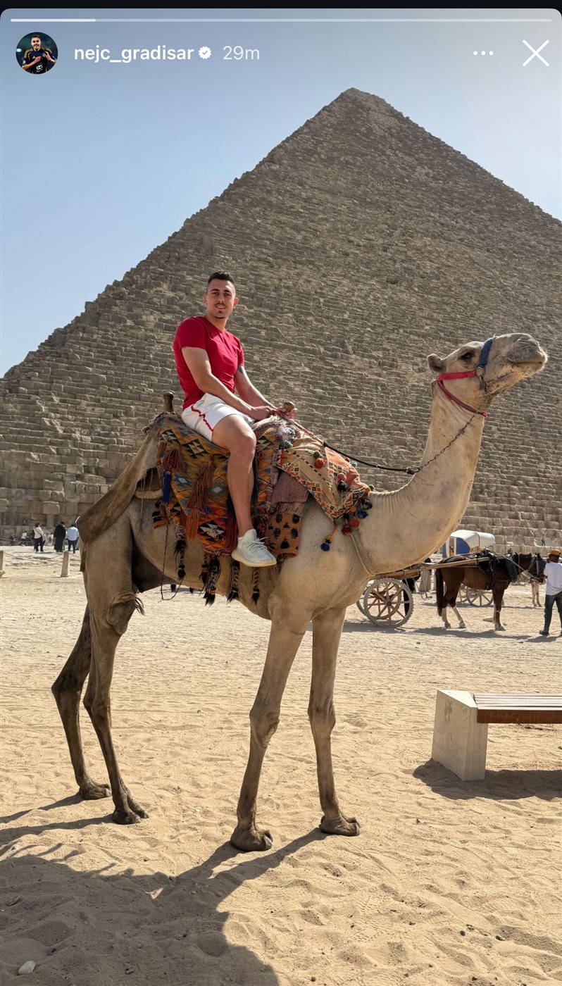 حرص نيتس جراديشار لاعب الفريق الأول لكرة القدم بالنادي الأهلي علي زيارة الأهرامات خلال قضائه فترة الراحة التي حصل عليها من مران المارد الأحمر اليوم الخميس.