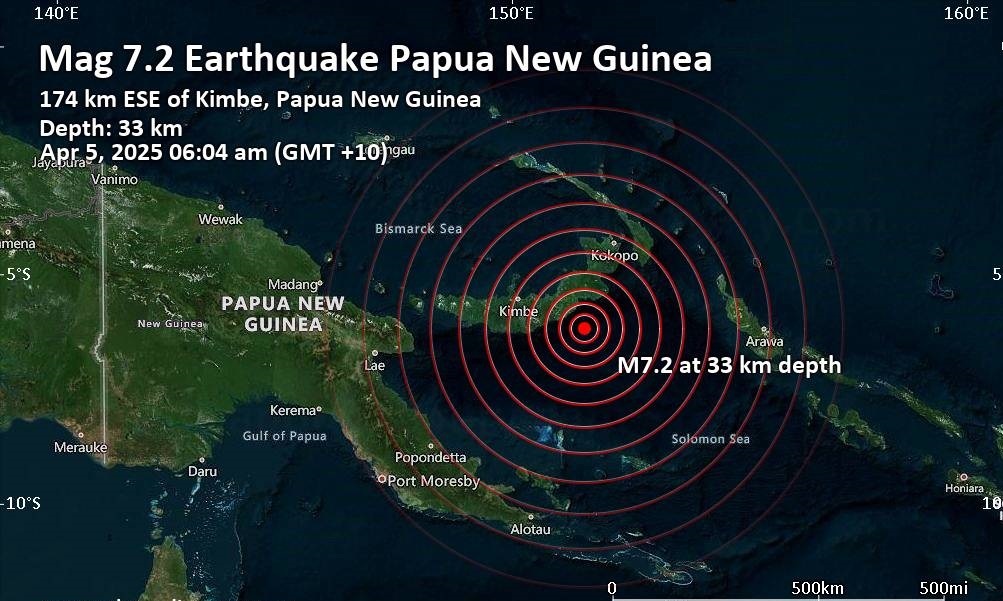 زلزال بقوة 7.2 درجة يضرب بابوا غينيا الجديدة