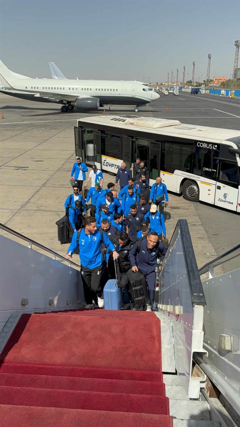 بعثة بيراميدز تغادر مطار القاهرة إلى المغرب لمواجهة الجيش الملكي (صور)