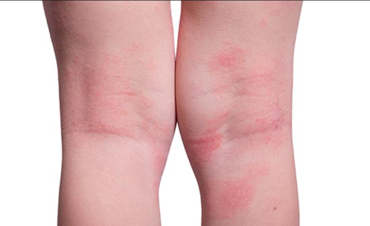 طفح جلدي أحمر اللون: يظهر الطفح الجلدي الأحمر على مناطق مختلفة من الجسم، مما يزيد من الإزعاج.