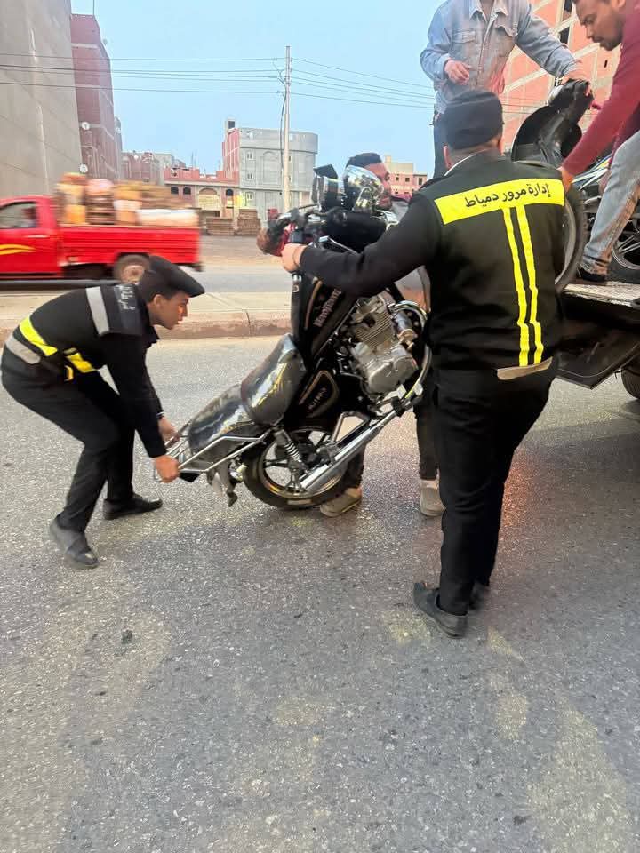 حملات مرورية مكثفة في جميع مدن ومراكز دمياط لوقف نزيف الطرق وضبط الدراجات غير المرخصة