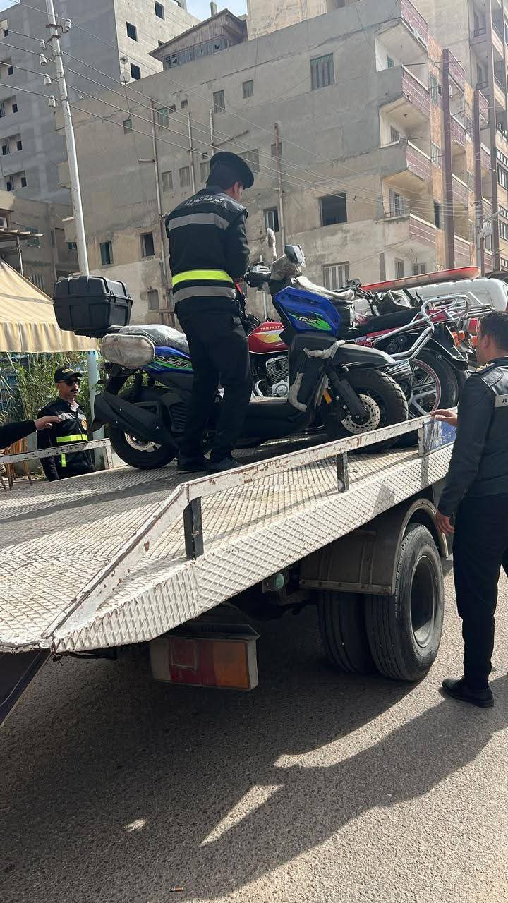 تواصل إدارة مرور دمياط برئاسة العميد محمد التل جهودها المكثفة لليوم الثالث على التوالي لضبط الدراجات النارية "الموتوسيكلات" غير المرخصة وسائقيها المخالفين للقواعد المرورية، في إطار تعزيز الانضباط المروري وضمان سلامة المواطنين.