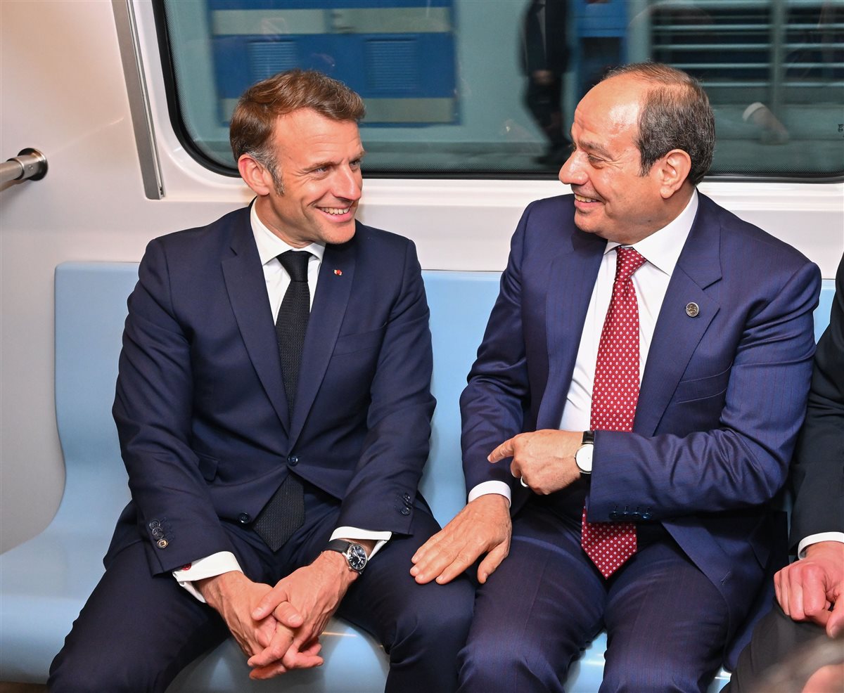 4 صور ترصد تفقد السيسي وماكرون محطة عدلي منصور التبادلية