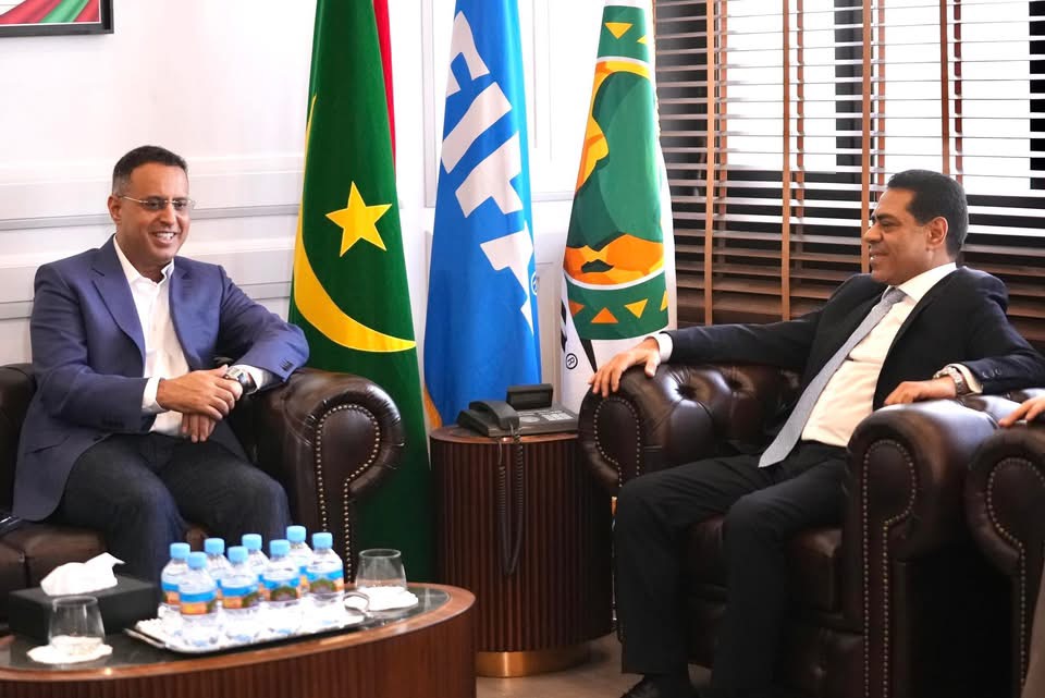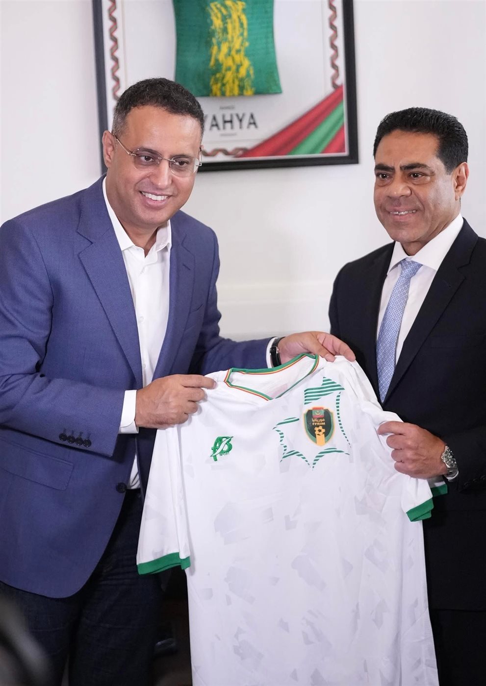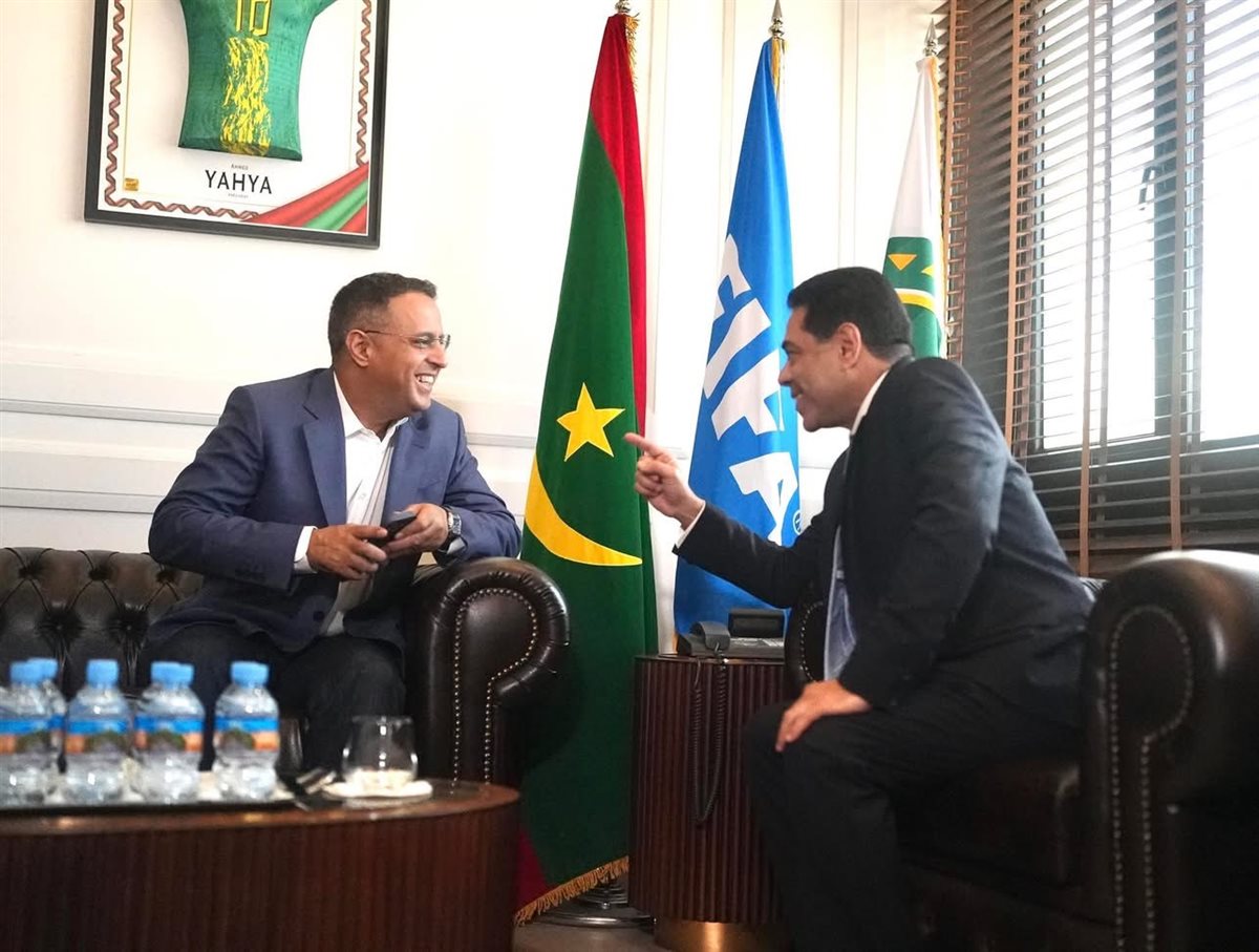 طارق قنديل يزور مقر الاتحاد الموريتاني ويهدي رئيسه درع وعلم الأهلي