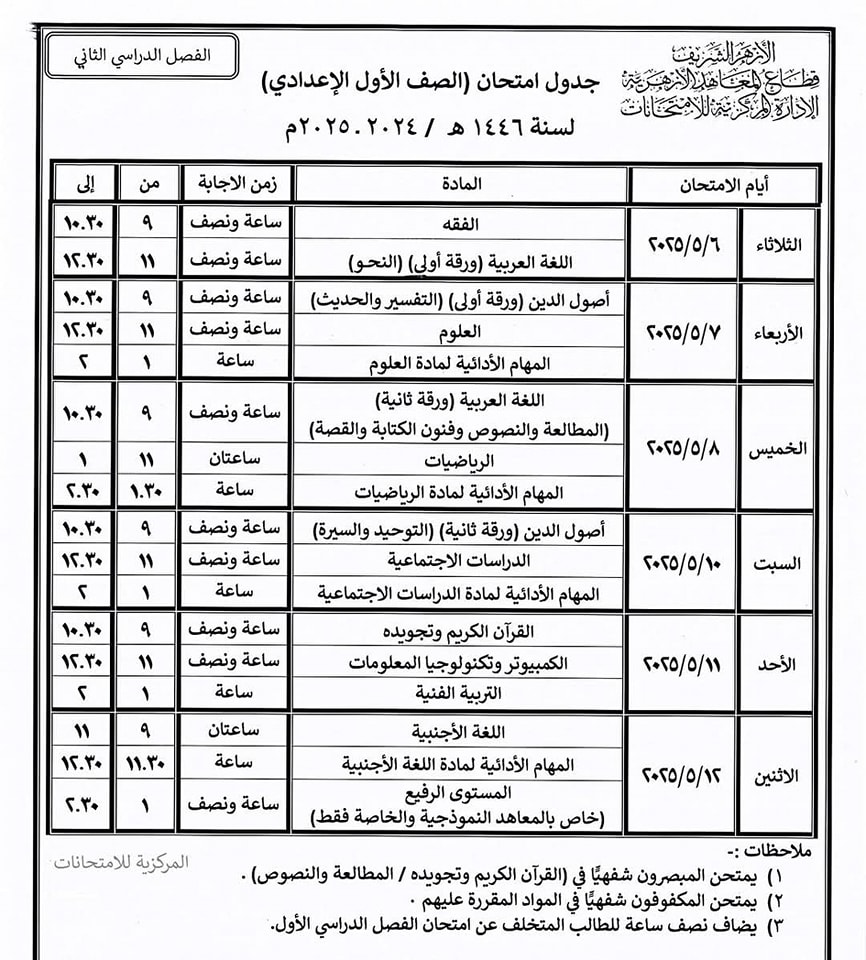 حقيقة تعديل جداول امتحانات النقل والشهادتين الابتدائية والإعدادية في المعاهد الأزهرية (صور)