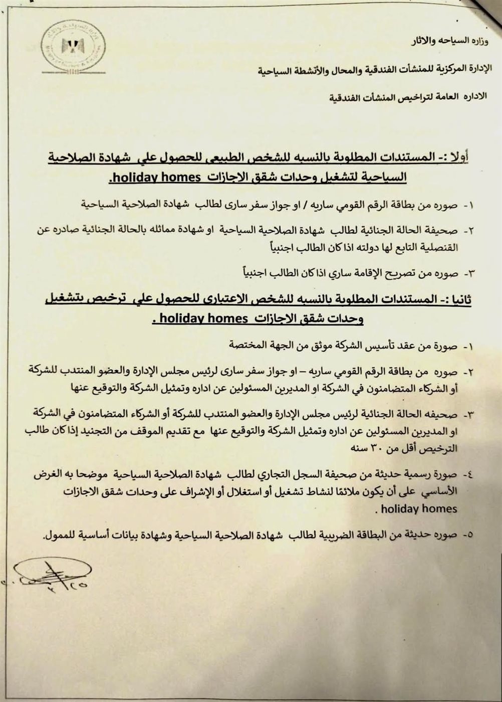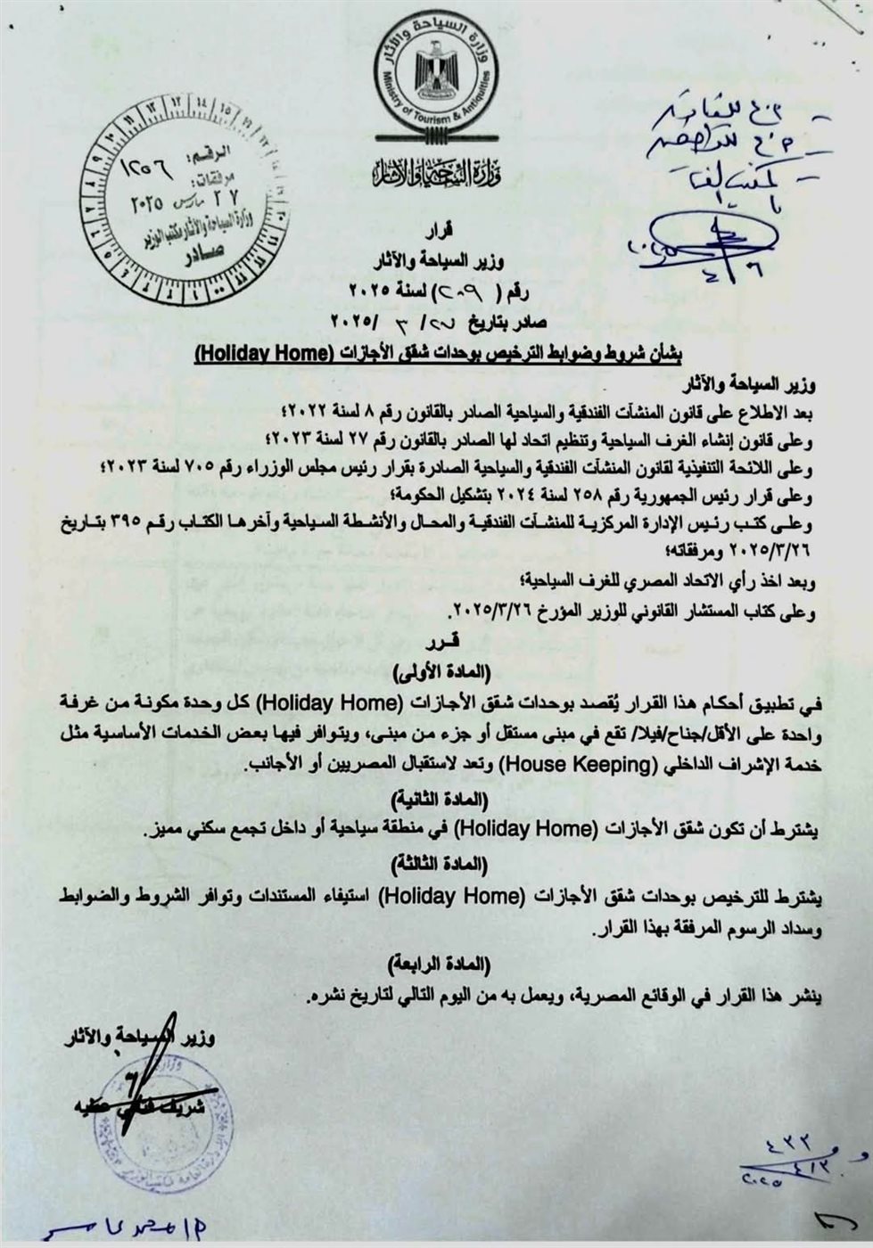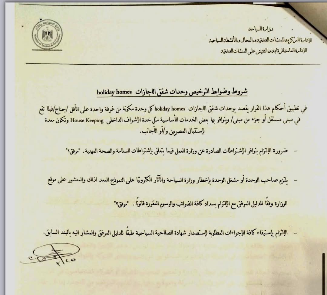 ننشر بنود وشروط قرار وزير السياحة والآثار لترخيص وحدات شقق الأجازات