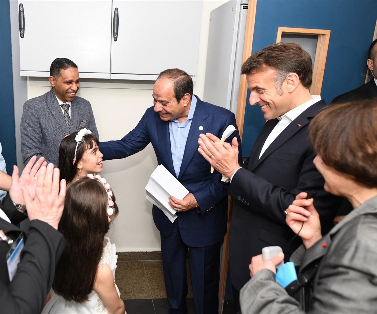 وصرح السفير محمد الشناوي، المتحدث الرسمي باسم رئاسة الجمهورية، بأن هذه الزيارة تأتي لتأكيد تضامن فرنسا مع الجهود المصرية الكبيرة في استقبال ورعاية المصابين من أبناء الشعب الفلسطيني جراء العدوان الإسرائيلي الغاشم على قطاع غزة، حيث شملت الزيارة تفقد الرئيسين السيسي وماكرون مستشفى العريش ولقائهما بعدد من الجرحى الفلسطينيين، لا سيما من النساء والأطفال، وكذا مركز الخدمات اللوجستية التابع للهلال الأحمر المصري المخصص لتجميع المساعدات الإنسانية المقدمة من مصر وكافة الدول الموجهة إلى قطاع غزة.
