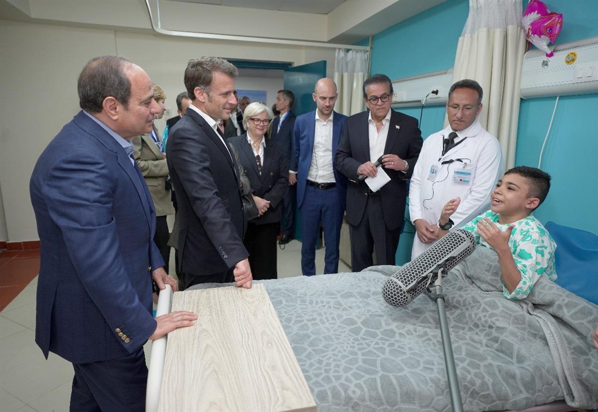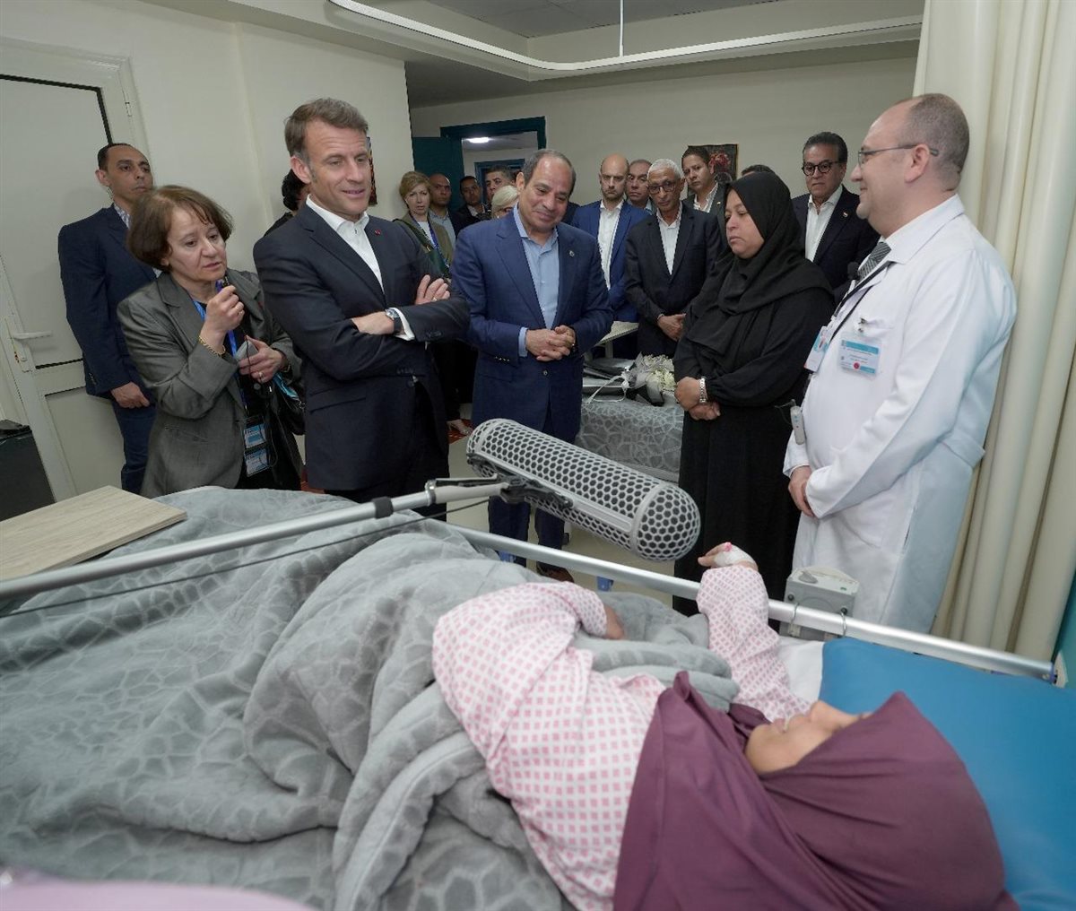 شاهد لقاء السيسي وماكرون مع المصابين الفلسطينيين بمستشفى العريش