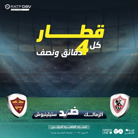 وجاء نص إعلان الشركة كما يلي: «بكرة الساعة 6:00 بالليل، هيستضيف ستاد القاهرة المباراة المنتظرة بين الزمالك وستيلينبوش، عشان نساعد جماهير الكرة في التنقل بسهولة، محطاتنا - خصوصًا محطة الاستاد - هتكون مجهزة بتجهيزات خاصة لضمان رحلة سلسة ومريحة قبل وبعد الماتش هيكون في قطار كل 4:30 دقيقة من محطة الكيت كات لحد محطة عدلي منصور، وكمان قطار كل 9 دقايق للركاب اللي جايين من جامعة القاهرة أو محور روض الفرج ومتجهين لمحطة الكيت كات، انضموا لينا، واستمتعوا بالماتش مع الخط الأخضر الثالث وآر ايه تي بي ديف للنقل كايرو».