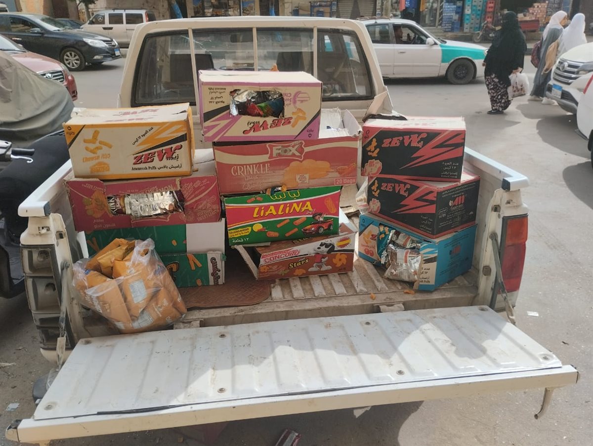 كما تم التحفظ علي 2250 عبوة (مشروبات غازية، هوهوز كيك) منتهية الصلاحية، و100 لتر مياه غازية منتهية الصلاحية، و35 اسطوانة بوتاجاز، و64 عبوة مبيدات زراعية منتهية الصلاحية، و180 كيس (سناكس، شيبسى)منتهي الصلاحية، و١٥ شيكارة نخالة خشنة تستخدم كعلف حيواني زنة الشيكارة ٣٥ كيلو جراما، و500 كيلو زبدة مجهولة المصدر غير مدون عليها تاريخ انتاج أو انتهاء.
