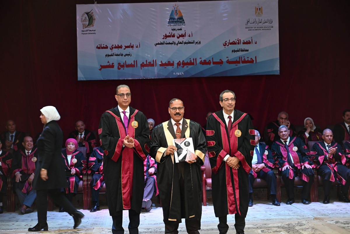 شهد الدكتور أحمد الأنصاري محافظ الفيوم، والدكتور ياسر مجدي حتاته رئيس جامعة الفيوم، تكريم رموز جامعة الفيوم و1200 من علمائها المميزين، في احتفالية عيد العلم السابع عشر، بحضور الدكتور جلال السعيد وزير النقل الأسبق، والدكتور سعد نصار محافظ الفيوم الأسبق.