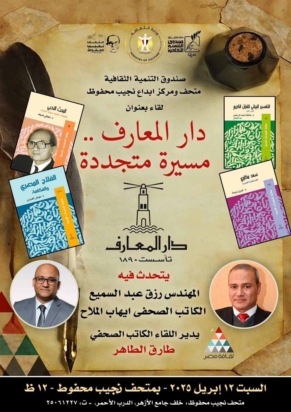 "دار المعارف.. مسيرة متجددة" لقاء ثقافي في متحف نجيب محفوظ