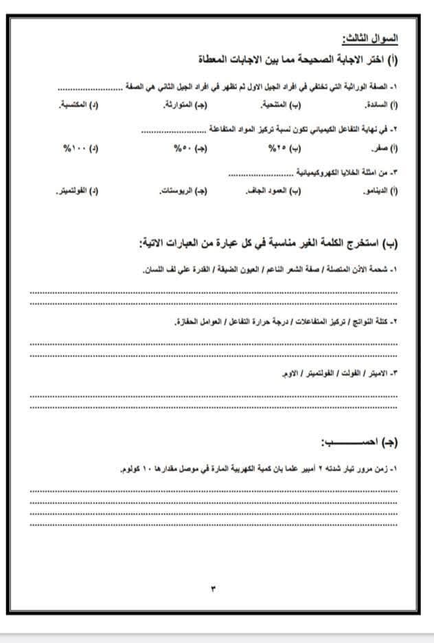 لطلاب الشهادة الإعدادية، الجيزة تنشر نموذجا استرشاديا لامتحان العلوم بنظام البوكليت