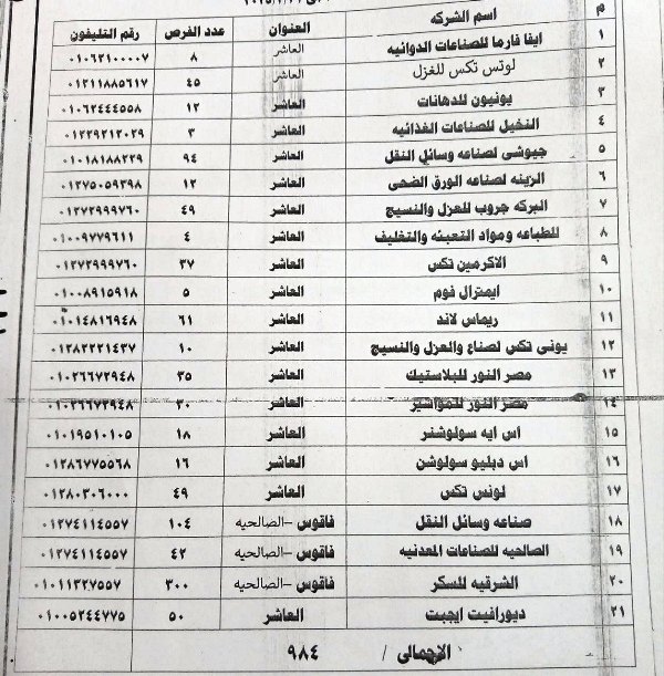 وأوضح وكيل وزارة العمل أنه للتعرف على الوظائف الشاغرة والبالغ عددها 984 وظيفة بالقطاع الخاص بمراكز ومدن العاشر من رمضان، وفاقوس، والصالحية الجديدة، يمكن الاطلاع على الملفات المرفقة أو التوجه لمقر مديرية العمل (الإدارة العامة لبحوث العمالة) الكائنة بالدور الرابع علوي - برج البريد - بجوار بنك الإسكندرية خلف مجلس مدينة الزقازيق.