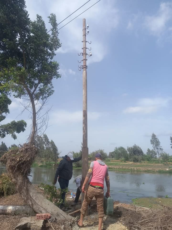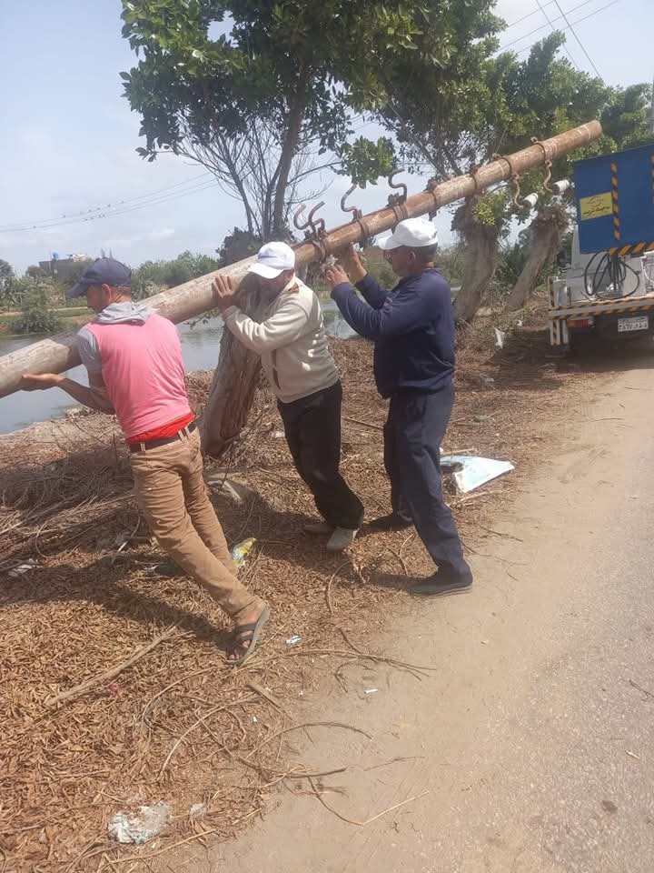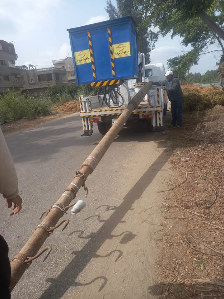 إزالة عمود إنارة مائل بطريق كفر الحصة في الدقهلية (صور)