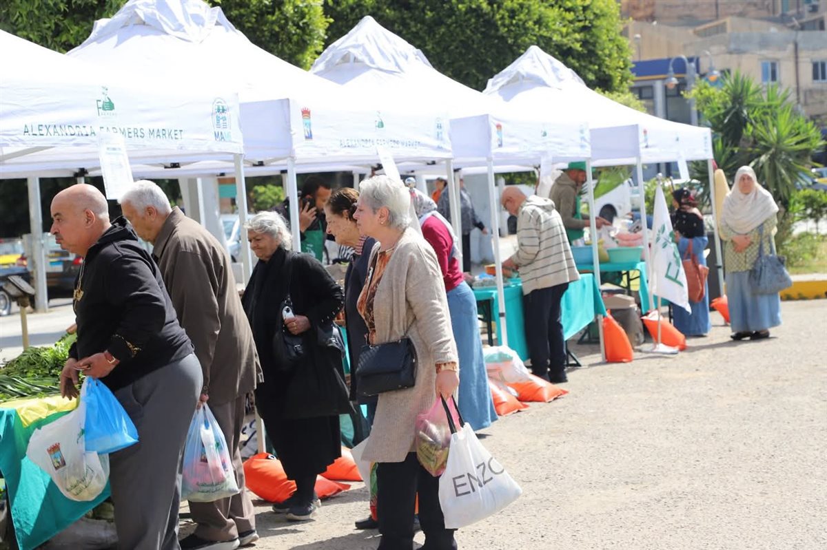إقبال المواطنين على سوق المزارعين لليوم الواحد بمنطقة محطة الرمل بالإسكندرية