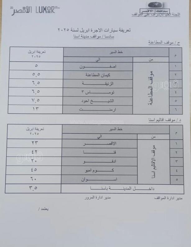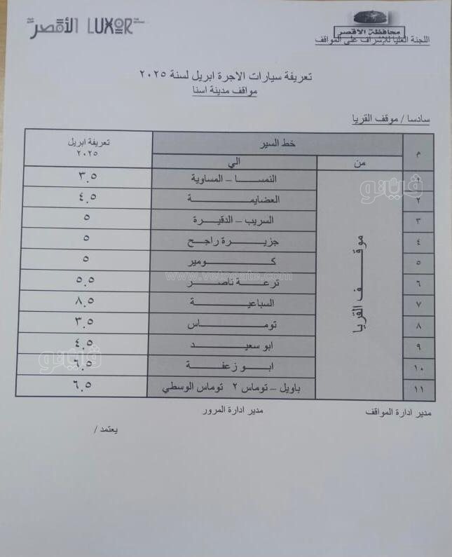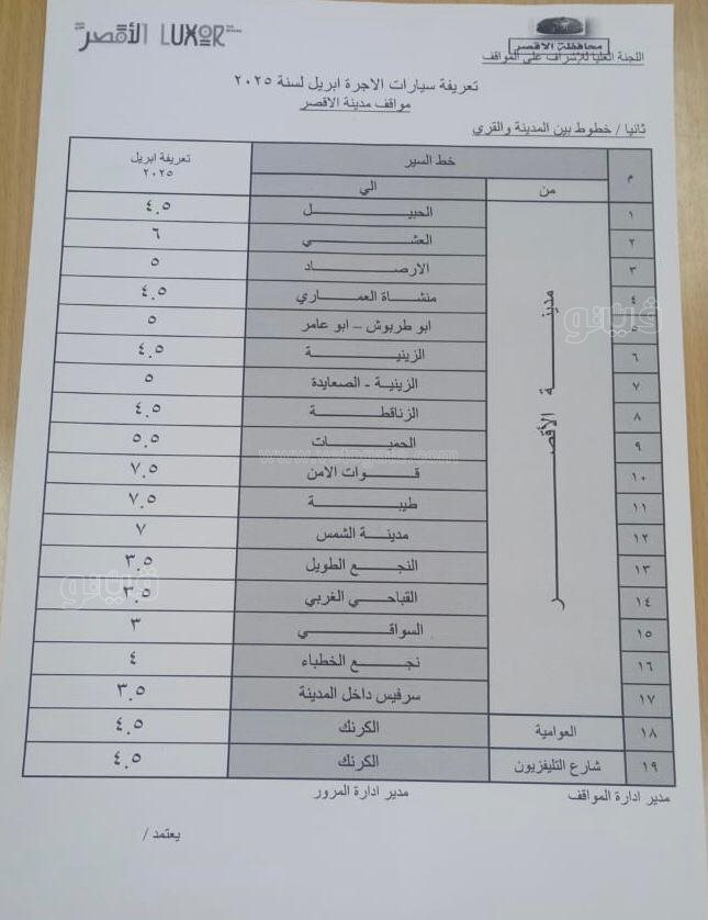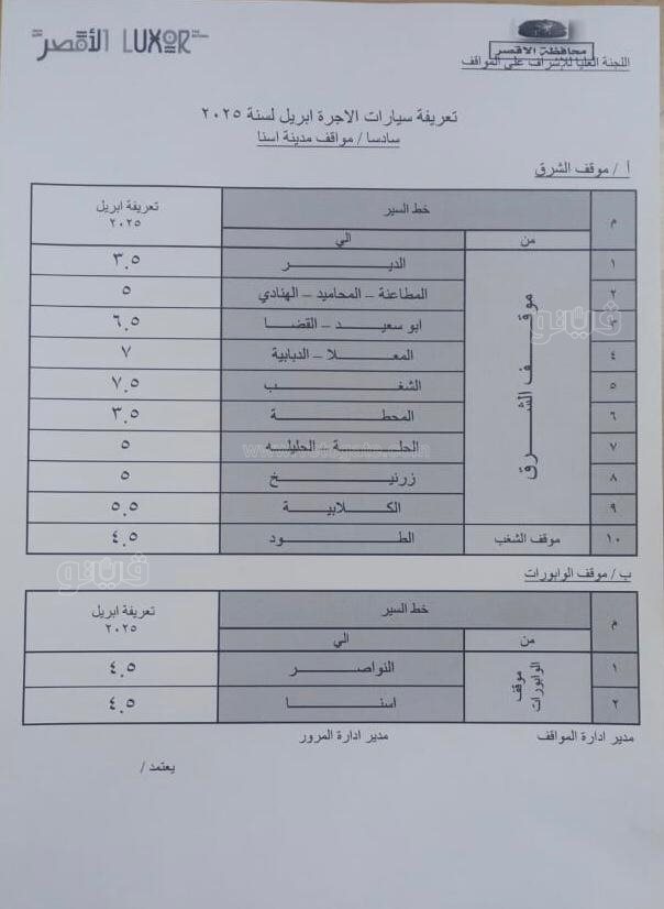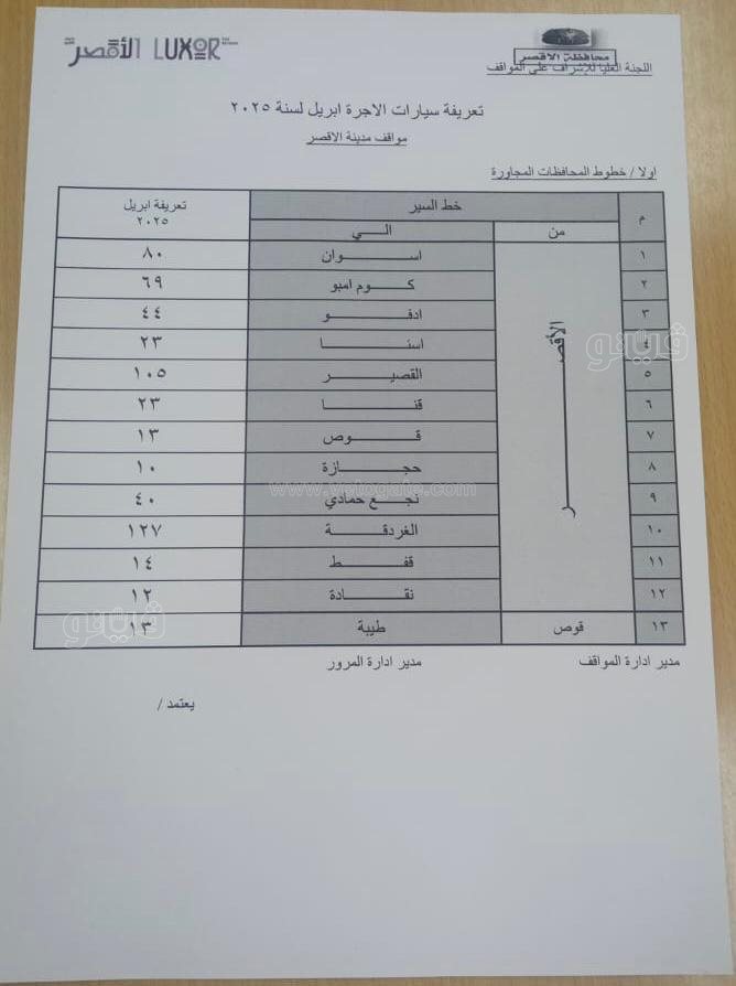 محافظ الأقصر يعتمد تعريفة الركوب الجديدة لسيارات الأجرة