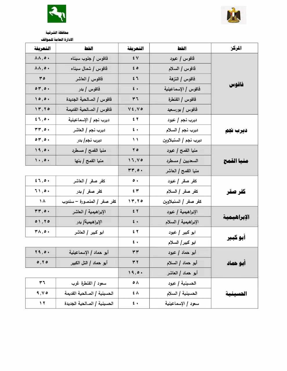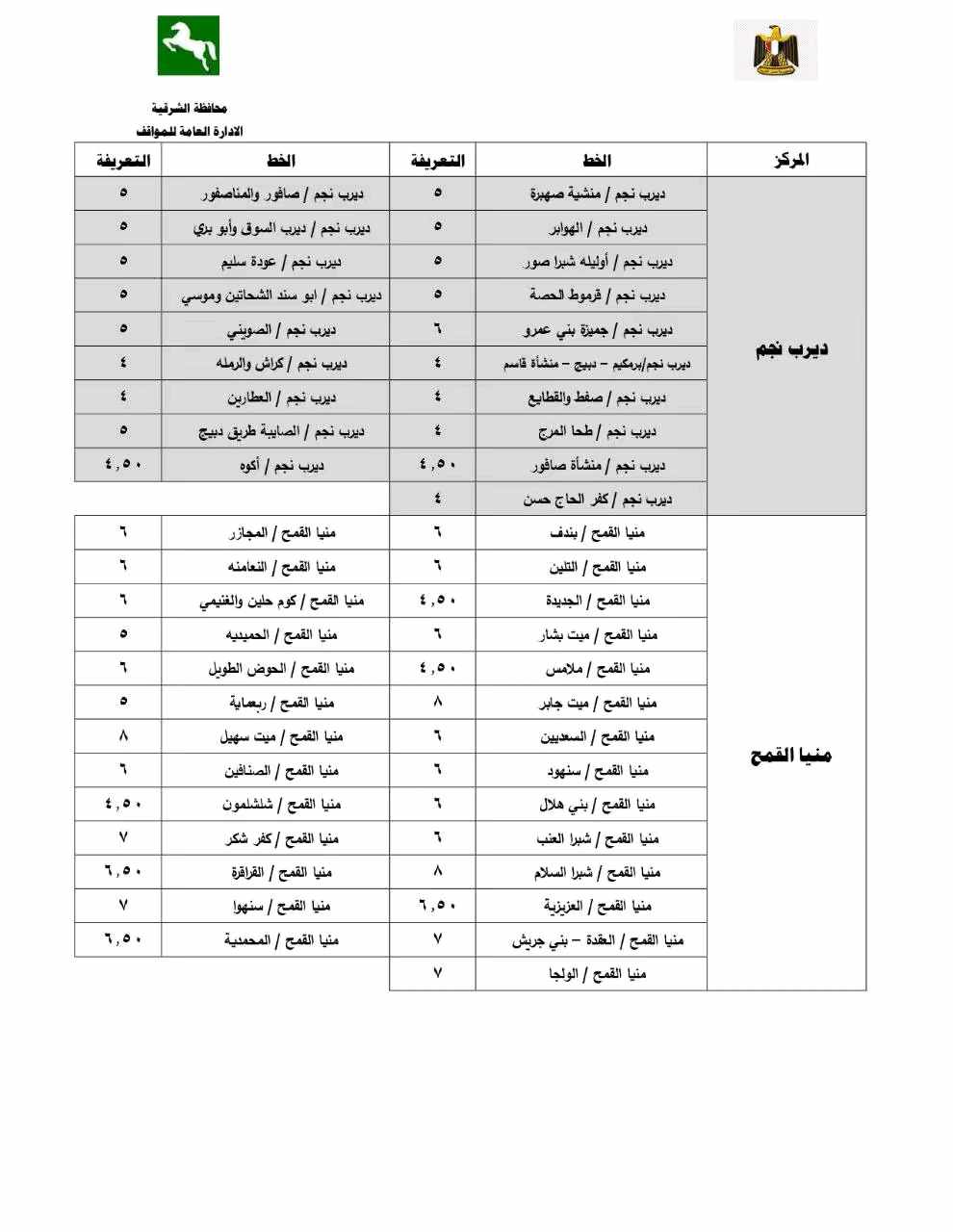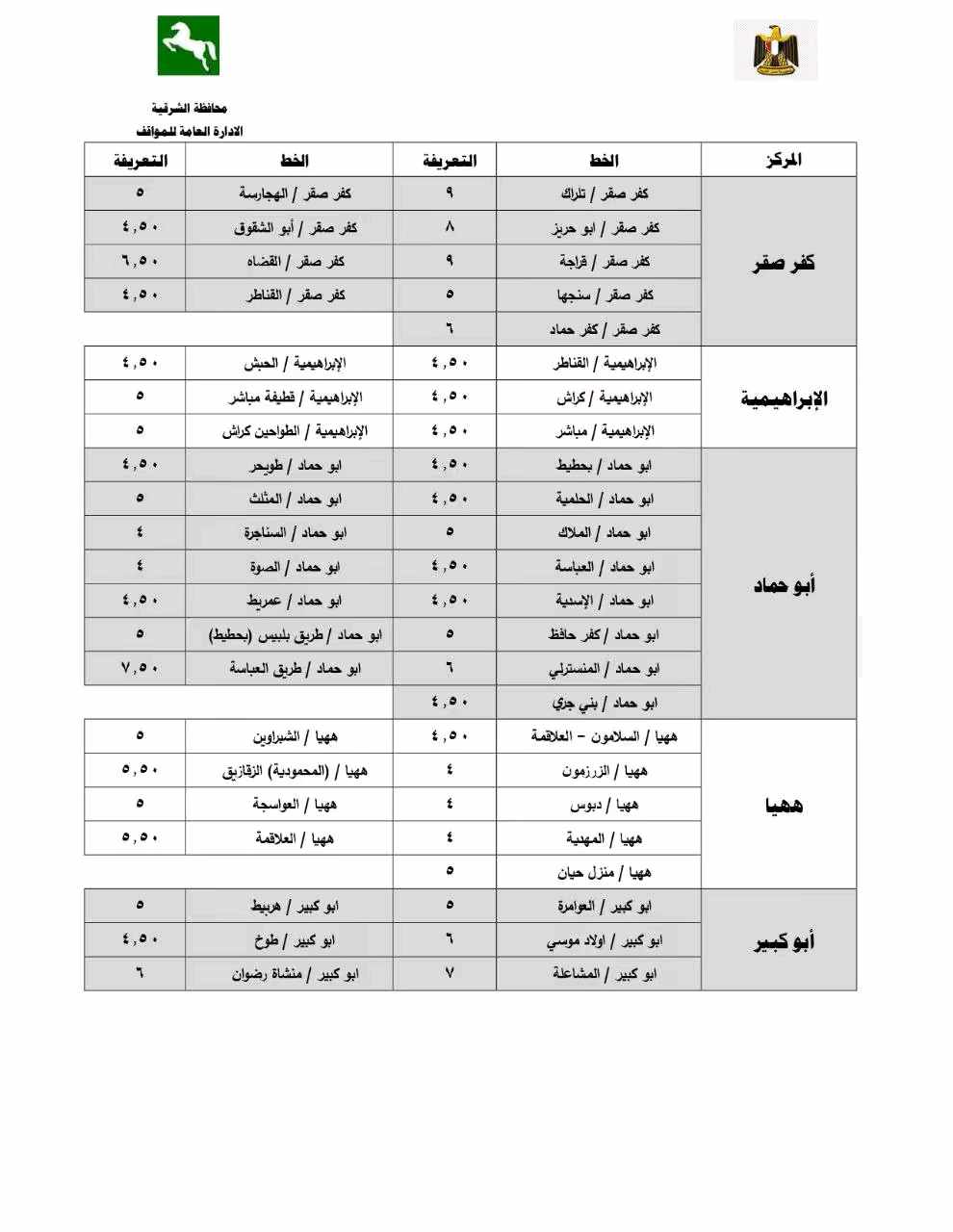 أوضح محافظ الشرقية أن قرار تعديل تعريفة الركوب جاء بما يتماشى مع مسافة كل خط سير ومراعاة للبعد الاجتماعي للمواطنين محذرًا من استغلال المواطنين في تحصيل مبالغ أزيد من تعريفة الركوب المقررة ومؤكدًا أنه سيتم إتخاذ كافة الإجراءات القانونية حيال غير الملتزمين.
