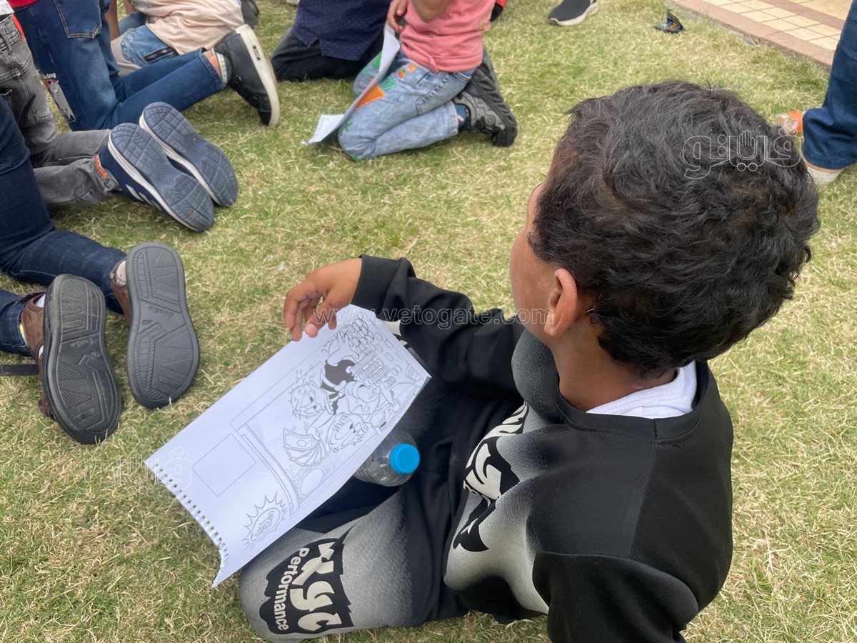 وحرص منظمو الحفل على توزيع ورق تلوين على الأطفال كما تم توزيع ألوان وهدايا.