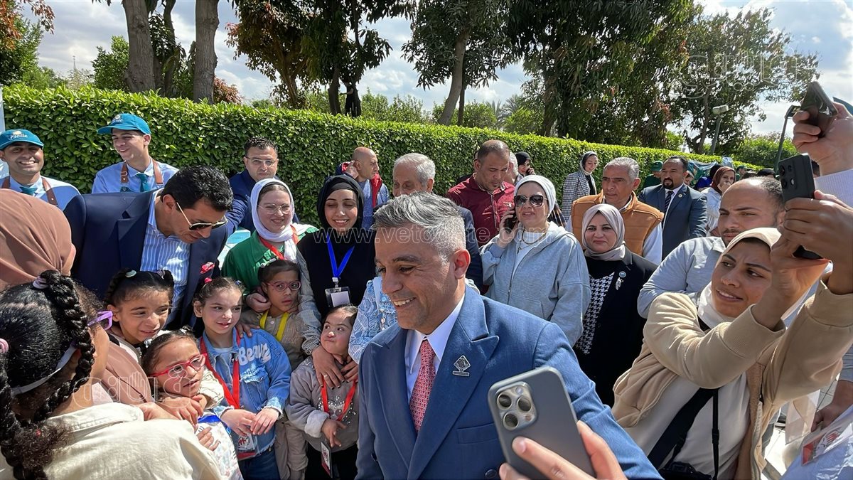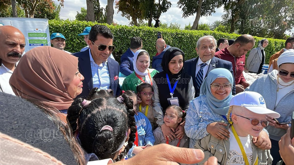 وزير الرياضة يلتقط صورا تذكارية مع الأطفال في احتفالية يوم اليتيم بحديقة الأزهر (فيديو وصور)