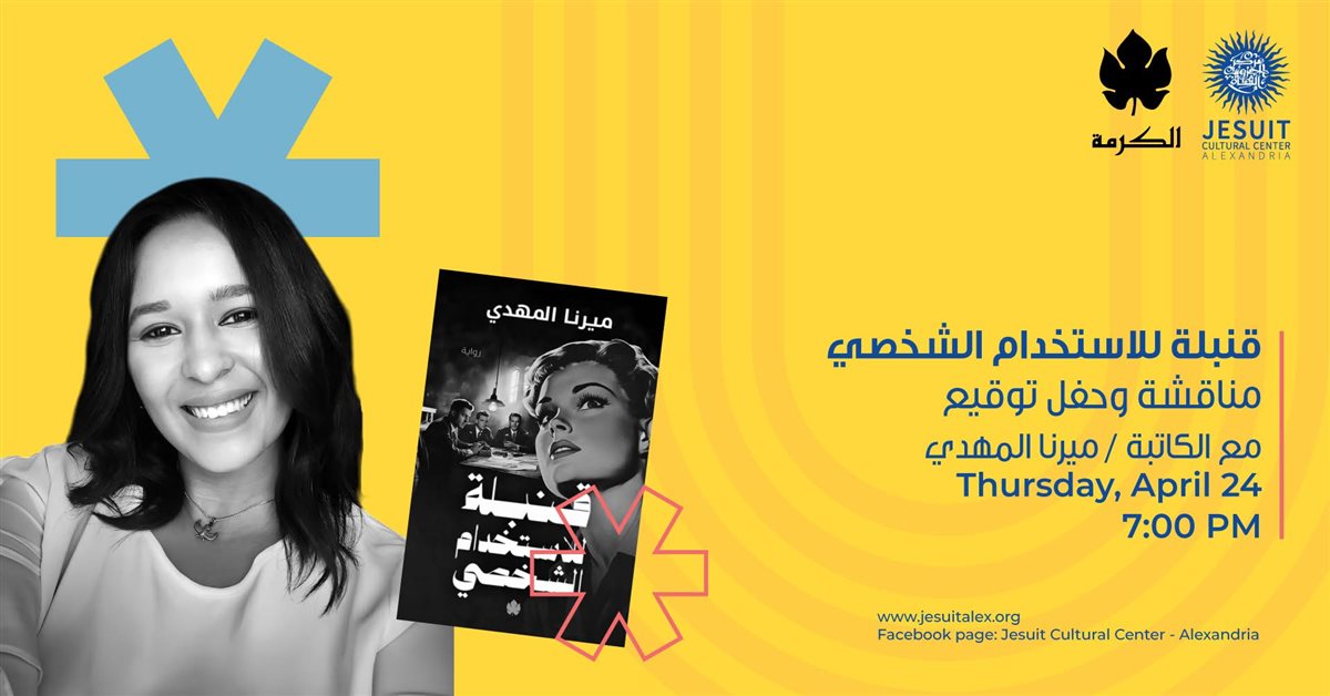 تنظم دار الكرمة للنشر والتوزيع، حفل توقيع ومناقشة رواية "قنبلة للاستخدام الشخصي" للكاتبة ميرنا المهدي، وذلك في تمام السابعة من مساء يوم الخميس الموافق 24 أبريل الجاري، في مركز الجزويت الثقافي بالإسكندرية.