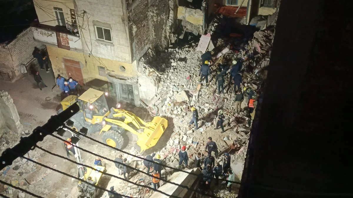 الاستعانة باللوادر لرفع الأنقاض للبحث عن المفقودين بالعقار المنكوب في الإسكندرية (فيديو وصور)