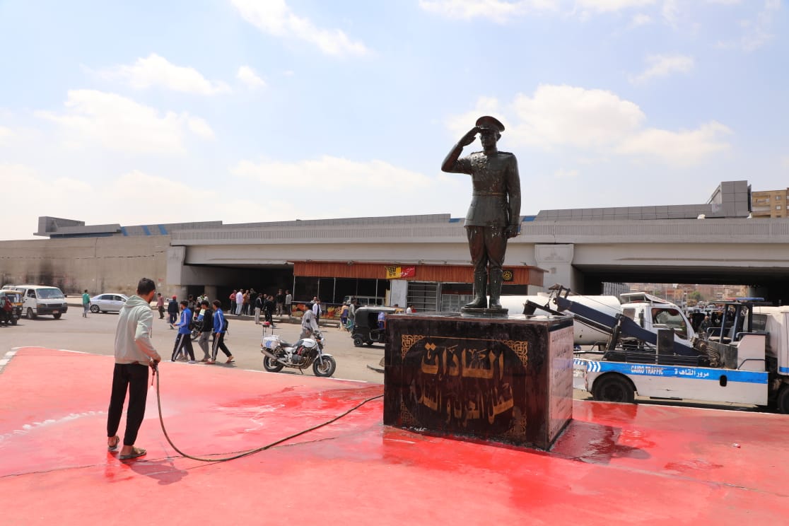 ووجه محافظ القاهرة للهيئة العامة لنظافة وتجميل القاهرة بزيادة المسطحات الخضراء ورفع المخلفات، وغسل الأرصفة، ورفع كفاءة تمثال الرئيس الراحل أنور السادات الذى يتوسط الميدان المسمى باسمه فى محيط الموقف.