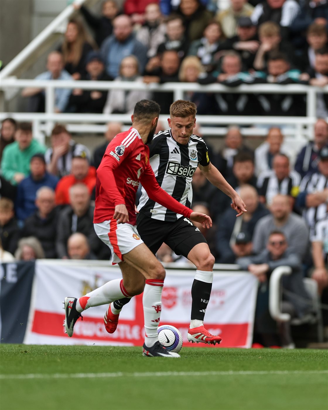 افتتح نيوكاسل التسجيل عن طريق تونالي في الدقيقة 24، قبل أن يتعادل جارناتشو في الدقيقة 36 لينتهي الشوط الاول بنتيجة 1-1.