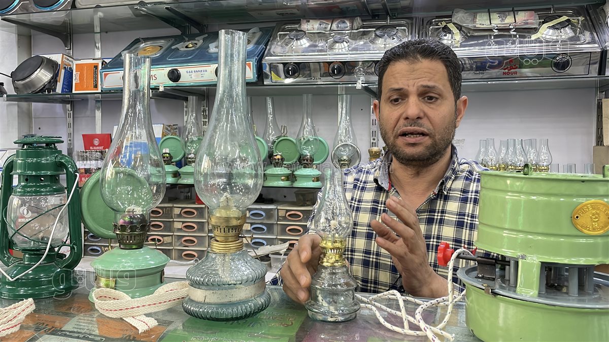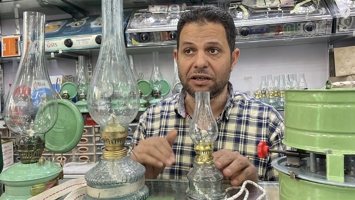 داخل المحل، يقف رجب مختار بشغف يستعرض كنوزًا من الماضي، وعلى رأسها "لمبة الجاز" والتي كانت أساس الإنارة في المنازل قبل عصر الكهرباء.