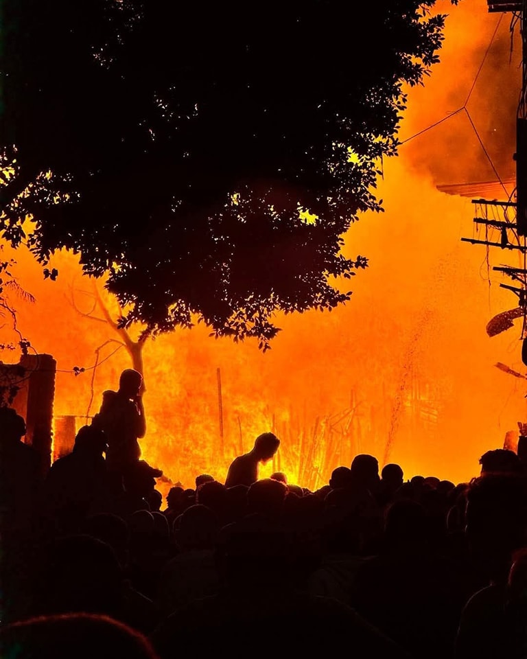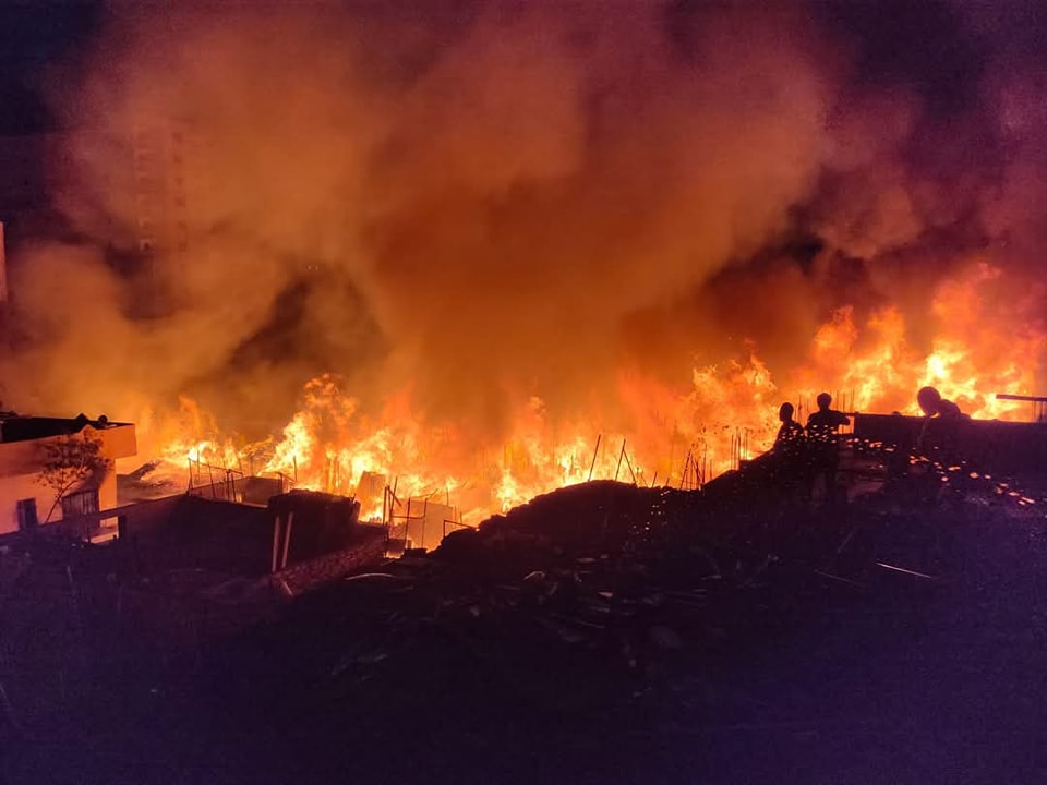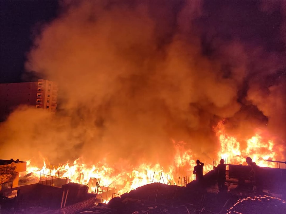 أظهر لقطات جديدة وصور حجم الحريق الهائل في مغالق الأخشاب بعزبة الورد بالشرابية المكتظة بالسكان.
