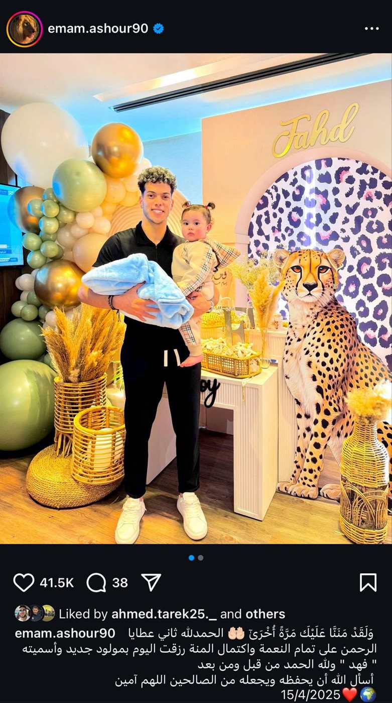 الأهلي، احتفل إمام عاشور لاعب الفريق الأول لكرة القدم بالنادي الأهلى بمولوده الثاني، والذي أطلق عليه اسم "فهد".