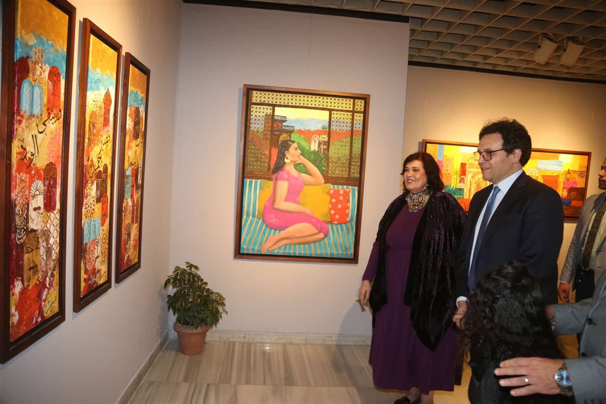 كما تفقد وزير الثقافة معرض “طَــلّـة من الشبــاك” للفنانة أميمة السيسي، المقام بقاعة صلاح طاهر للفنون التشكيلية، ويضم المعرض نحو 40 لوحة بخامات الزيت والأكريليك على الكانڤاس، تقدم رؤية تشكيلية خاصة تستوحي مشاهدها من تفاصيل الحياة اليومية والتراث الشعبي، من خلال نوافذ بصرية تعبّر عن ارتباط الإنسان بمحيطه، وما يحمله من أحاسيس وتأملات.