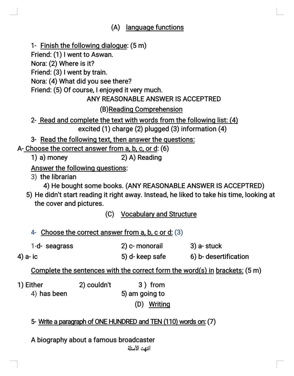 تعليم القاهرة تنشر إجابة نماذج البوكليت في اللغة الإنجليزية لطلاب الشهادة الإعدادية