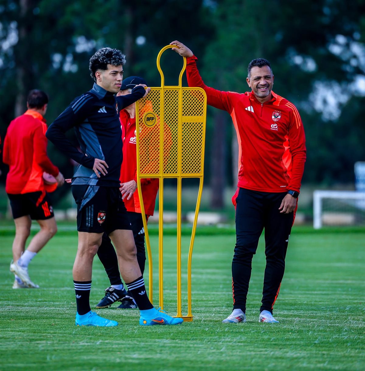 ورافق البعثة محمود الخطيب، رئيس النادي الأهلي، المشرف العام على الكرة.