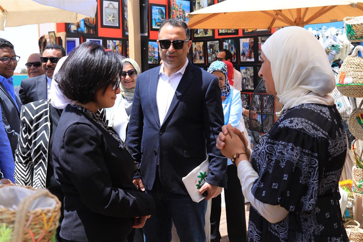 وحرصت نائبة محافظ البحر الأحمر ومساعد وزيرة التضامن الاجتماعي على تفقد أروقة المعرض، والاطلاع على منتجات العارضين المتنوعة والتي تتميز بالجودة وتمثل التراث المصري الأصيل.