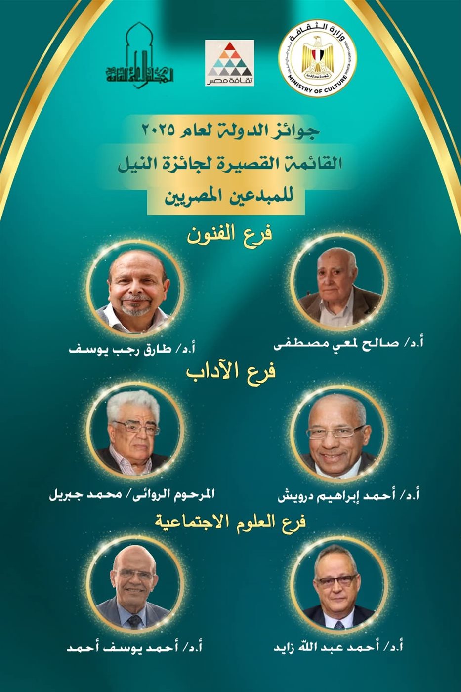 قوائم المرشحين لجائزة النيل للمبدعين المصريين والمبدعين العرب لعام 2025