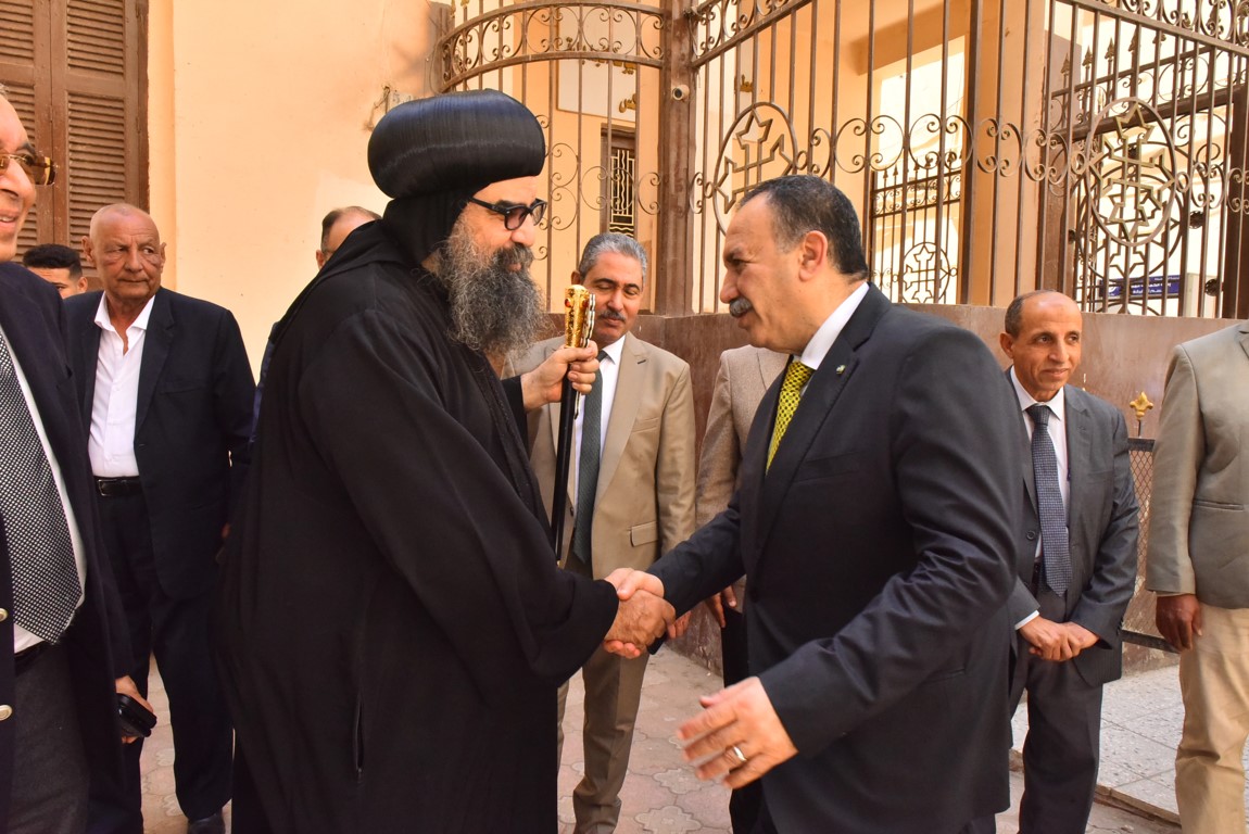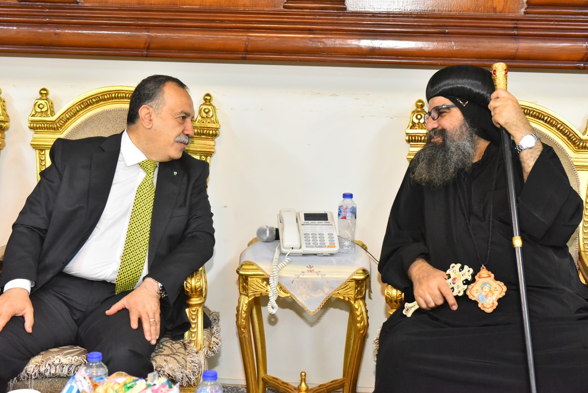 محافظ أسيوط يزور مطرانية الأقباط الأرثوذكس بأبنوب لتقديم التهنئة لنيافة الأنبا بيسنتي