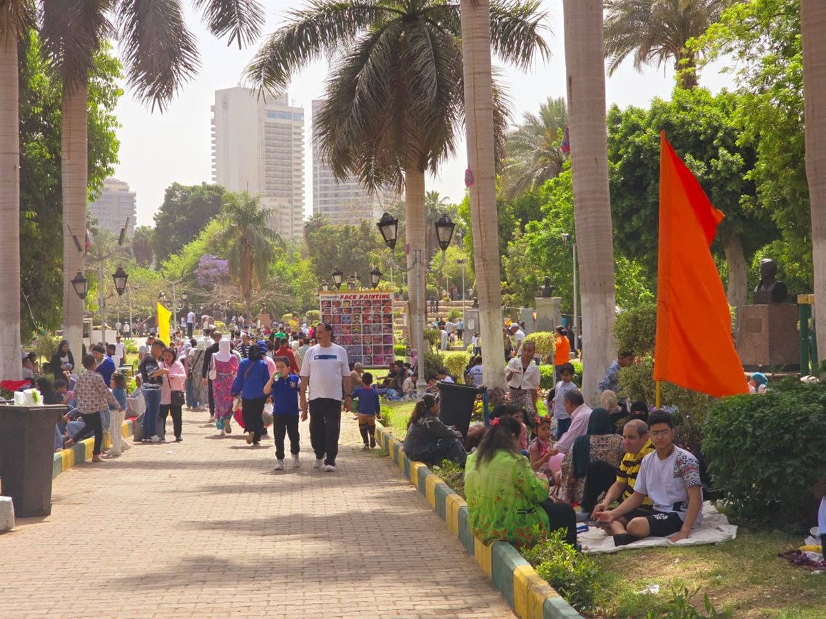 شهدت الحديقة زيادة أعداد المواطنين من الأسر والأطفال للاحتفال بعيد شم النسيم وقضاء وقت ممتع مع الأسرة والأطفال واتخاذ الصور التذكارية والتنزه في الحديقة.
