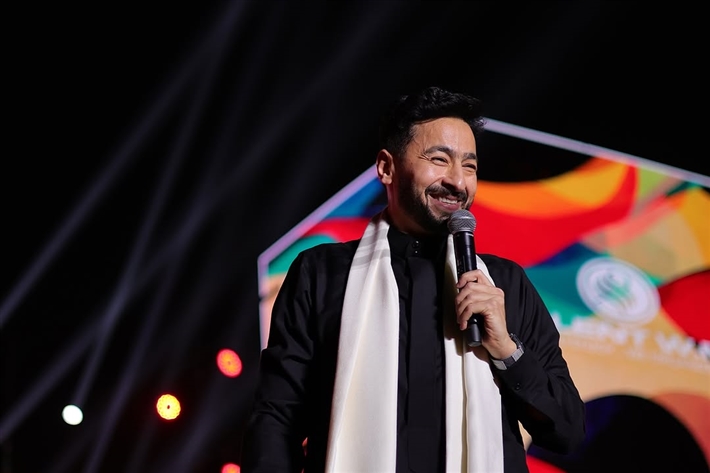 بصحبة نجله، حمادة هلال يتألق بجلباب "المداح" في حفل شم النسيم (فيديو وصور)