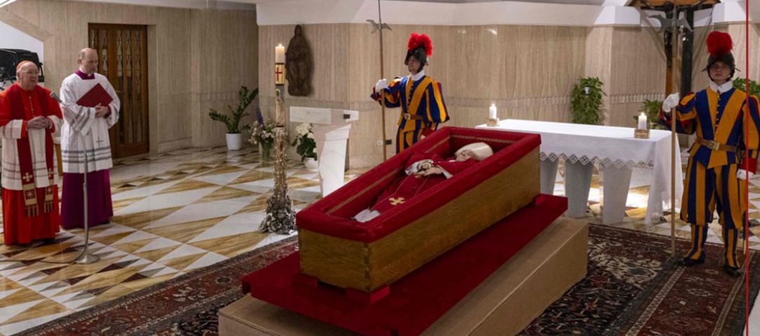 ومن المفترض نقل جثمانه من بيت القديسة مرتا ليسجى في كاتدرائية القديس بطرس اعتبارا من الأربعاء، من دون منصة تزيينية للنعش، نزولا عند رغبة البابا الأرجنتيني الذي حرص في وصيته على أن تكون المراسم بسيطة ومتواضعة قدر المستطاع.