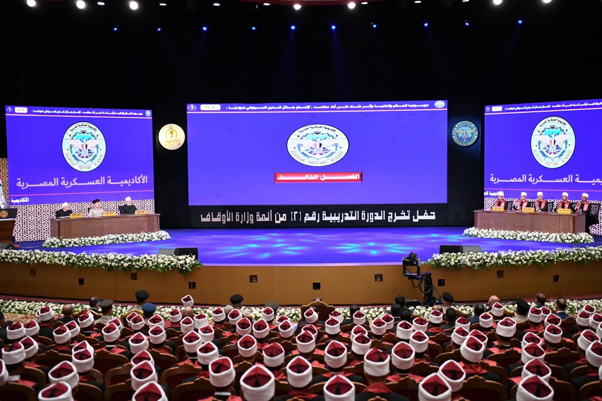 وصرح المتحدث الرسمي باسم رئاسة الجمهورية أن تخريج وتأهيل هذه الدفعة الجديدة من الأئمة، التي ضمت ٥٥٠ إماما واستمرت لمدة ٢٤ أسبوعًا، يأتي في إطار تنفيذ توجيهات الرئيس لوزارة الأوقاف، بالتنسيق مع مؤسسات الدولة المعنية، بما فيها الأكاديمية العسكرية المصرية، لوضع برنامج تدريبي متكامل يهدف إلى تعزيز قدرات الأئمة على مختلف المستويات، بما يسهم في الارتقاء بالخطاب الديني وتطوير آليات التواصل، خاصة لمكافحة ودحض الفكر المتطرف، فضلًا عن ترسيخ الوعي والمعرفة والإدراك لمختلف القضايا الفكرية والتحديات الراهنة.