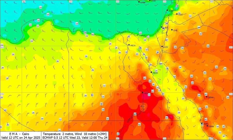 الغردقة: درجة الحرارة الصغرى 21 ودرجة الحرارة العظمى 33