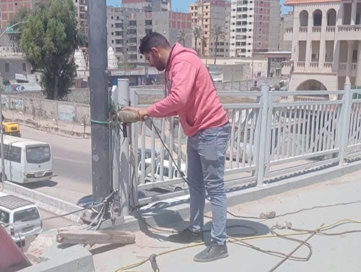 وقد تم تأمين الكوبري بالكامل من خلال تنفيذ أعمال لحام وتركيب حديد بديل، حفاظًا على سلامة المارة ومنعًا لأي مخاطر محتملة.