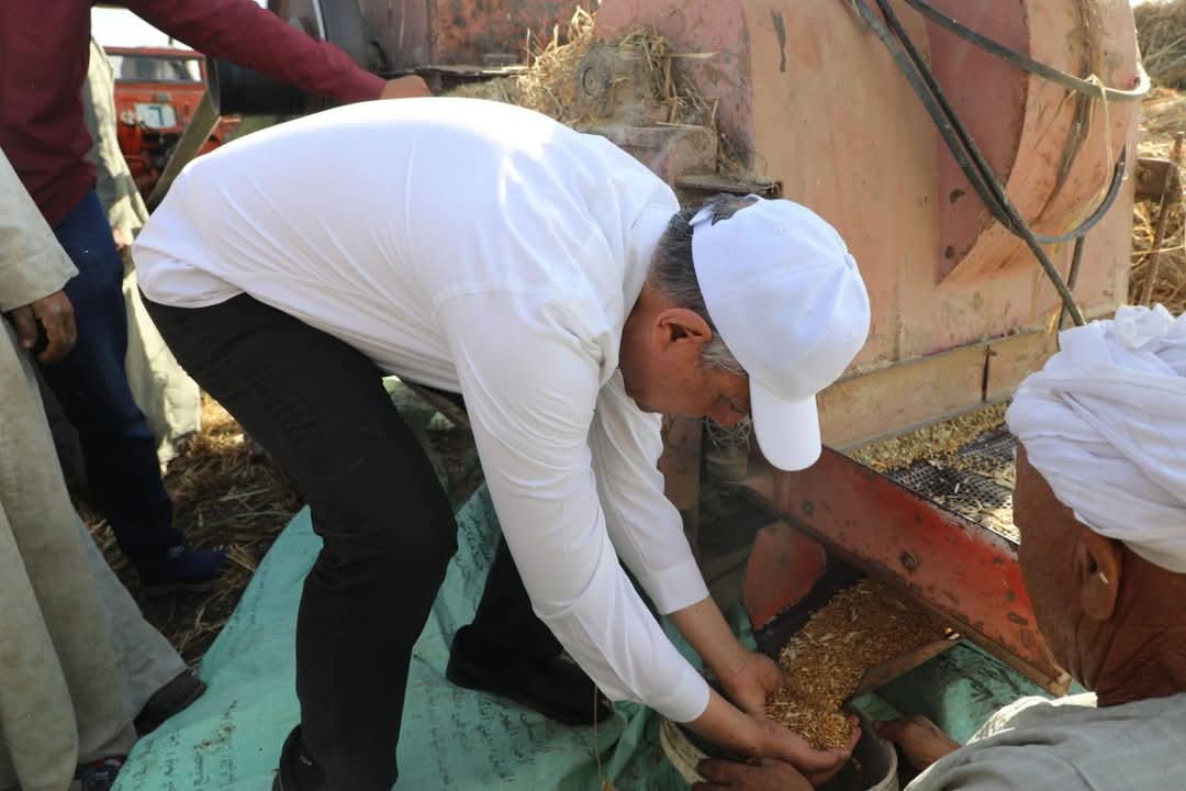 محافظ المنيا يشارك المزارعين حصاد القمح ( صور)